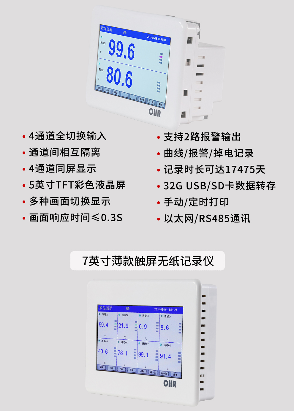 OHR-T系列觸摸屏無(wú)紙記錄儀